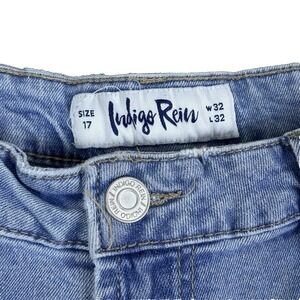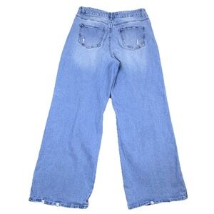 Additional keywords: womens wide leg jeans distressed high rise ripped denim casual street style size 17 Indigo Rein