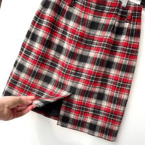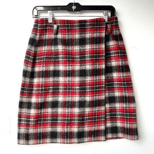 VTG 90s Eddie Bauer Red Black Plaid Wool Wrap Skirt SZ 8 Lined Kilt Style