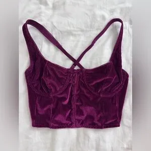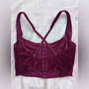 Out From Under - Anastasia Ribbed Velvet Bustier Top, Burgundy, Small
