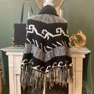 Steve Madden Black and White Knit Poncho