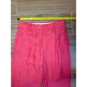 These J.Crew trousers feature a flattering straight leg silhouette, accentuated by stylish pleats that add a touch of sophistication. The beautiful coral hue radiates warmth and positivity, perfect for brightening any ensemble. Designed with meticulous attention to detail, the comfortable waistband and refined tailoring ensure a flawless fit, while the classic design makes them a timeless addition to your wardrobe. Make a statement at a summer garden party, elevate your office attire with a pop of color, or simply enjoy a relaxed weekend brunch in style with these versatile linen trousers.