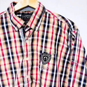 CAMPIONE | Plaid Button-Down Shirt Beige Black Red Men’s | XXL *
