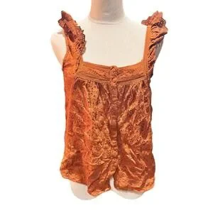Lucky Brand Orange Eyelet Flutter Sleeve Square Neck Button Front Tank Top M