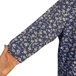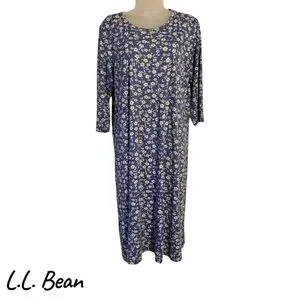 L.L. Bean Navy Floral 3/4 Sleeves Dress MEDIUM/LARGE #CL