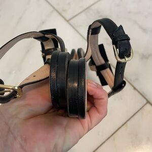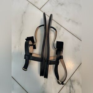 Club Monaco, euro 38 US 7.5, women’s black and tan leather t-strap bow tie flats