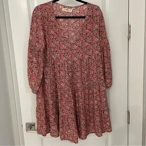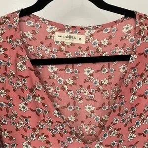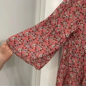 NEW Natural Life Pink Floral Tiered Babydoll Popover Dress Size Medium Boho. 23