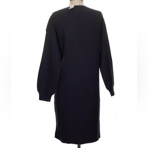 Sleek ribbed knit midi dress by Ann Taylor. Long balloon sleeves with fitted cuffs. Minimal, elegant silhouette. Soft stretch fabric for comfort.