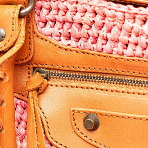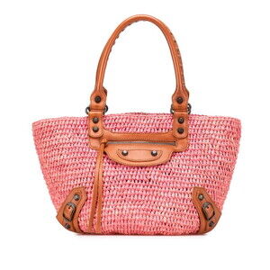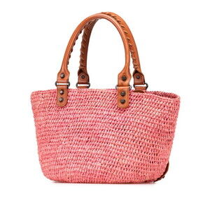 Balenciaga handbag basket bag pink brown raffia leather Includes a Certificate of Authentication!
