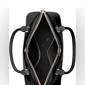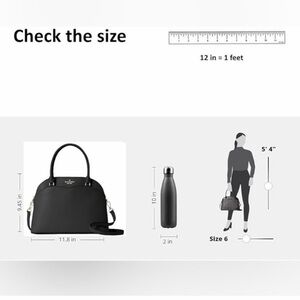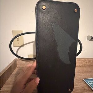 Classic kate spade dome satchel in black leather. Structured silhouette with top handles and a removable shoulder strap. Subtle gold-tone hardware and embossed logo. Versatile, polished style for everyday use. Only flaw is the bottom of the bag, the leather part peeled off a little, I think it was set down on something, but it doesn’t effect or show any sign of use while using the bag.