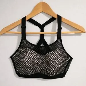 Victoria’s Secret Mesh Sports Bra 34D Black White Sheer Strappy Bra
