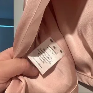 Soft pink satin crop top by Orseund Iris with signature tie-back detail. Super flattering and minimal with a luxe feel — perfect for going out or styling casually.