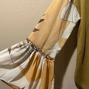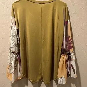 Pictures don’t do it justice, gorgeous blouse with sheer bell sleeves, excellent condition, size medium