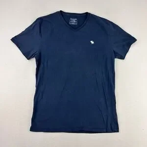 Abercrombie & Fitch V-Neck T-Shirt Mens L Navy Blue Cotton Nautical Peppy