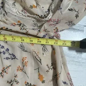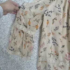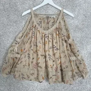 Rebecca Minkoff XS Floral Print Sheer Cold Shoulder Bell Sleeve Blouse Top