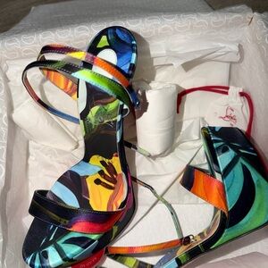 Christian Louboutin Multicolor Floral Loubi Queen Alta Heels