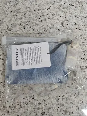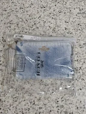 Coach Corner Zip Wristlet In Loved Denim With Charms