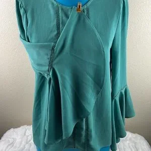 Vintage June & Hudson sage green eyelet 3/4 bell sleeve soft cremplin fabric