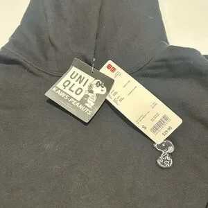 Uniqlo collaboration hoodie featuring KAWS x Peanuts branding. Hooded pullover with logo hang tags and character charm. Minimal, streetwear-inspired looks