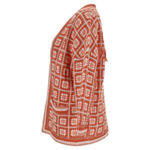 Delivery Duty Paid included – Bring playful texture and color to your wardrobe with the Maje Fringed Crochet Cardigan, crafted in multicolor cotton with a patch-style crochet design. The long, loose silhouette, mid-length sleeves, and fringe detailing on the back create a relaxed yet fashion-forward look, complete with convenient front pockets. Introduced in the Spring/Summer 2021 collection, this cardigan embodies Maje’s signature blend of bohemian chic and contemporary Parisian style.