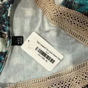 Brand new Teal Leopard Tan Lace Vneck Tank!