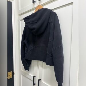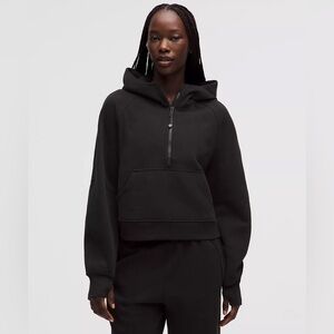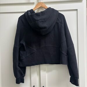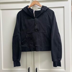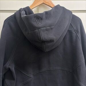 Black Lululemon Scuba hoodie in size M/L with oversized fit and funnel neck style.