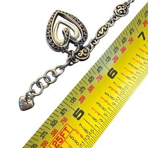 Keywords: Brighton, heart bracelet, silver tone, scrollwork, bohemian, charm bracelet, romantic, western, filigree, designer jewelry, everyday wear, gift for her, classic, adjustable, etched