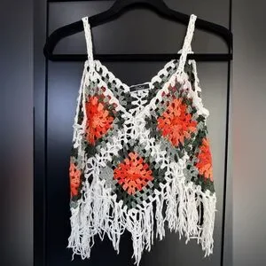 Vivid Boho Crochet Fringe Tank Top – Size Small