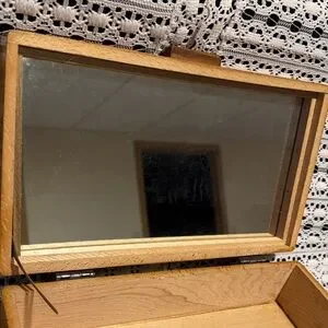 Hand-Carved Wooden Keepsake Box with Dovetail Corners, Scenic Inlay and Mirror