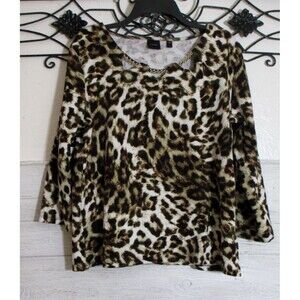 Rafaella Women's Knit Top Size XL Long Sleeve Multicolored Animal Print