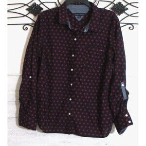 Tommy Hilfiger Button Up Women's Top Size L Long Sleeve Blue Floral
