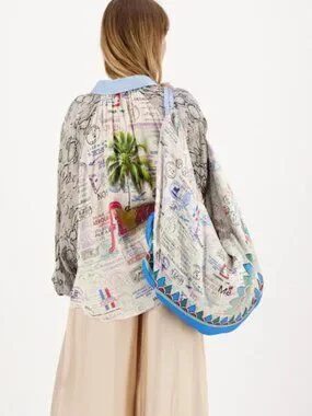 ME369 Adrianna Snake Print Blouse Statement Top NWT
