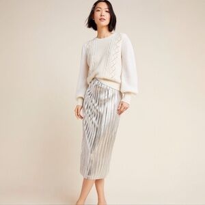 Anthropologie x Maeve Pleated Shimmer Silver Skirt