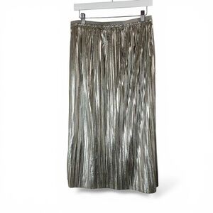Anthropologie x Maeve Pleated Shimmer Silver Skirt Size 6