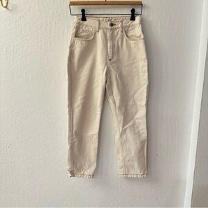 Reclaimed Vintage Ecru Cream Brown Stitching 90s Tapered Mom Fit Jeans 4