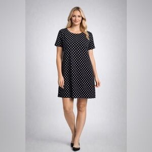 TIANA B Chic Black and White Polka Dot Shift Dress Flutter Sleeves Lightweight