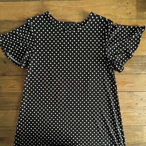 * Shift black dress with white polka dots.
