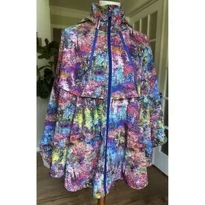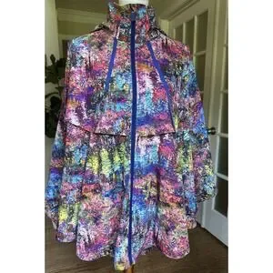 Up for sale is a Lululemon Seawheeze Horizon Cape Jacket in size L/XL (missing size tag but fits oversized). This rare and highly sought-after cape features a vibrant multicolor abstract print with a flowy, poncho-style silhouette. Perfect for layering, this jacket offers both style and function—ideal for outdoor adventures, casual wear, or making a statement at festivals.