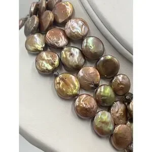 Silpada necklace with 3 strands of lustrous bronze flat coin pearl faceted smoky quartz bicone crystal and sterling silver beads