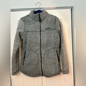 Columbia Sherpa Fleece Jacket Womens Medium Gray Full Zip Cozy Outdoor