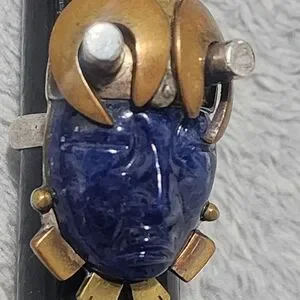 Taxco Blue Lapis Face Ring Sz 7.5 950 Silver Mixed Metal Accents Handmade Artist