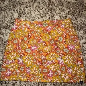 Playful floral mini skirt by Vans. Bright multi-color flower print. Lightweight and casual. Easy to pair with tees or sneakers.