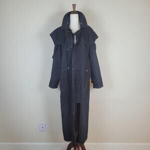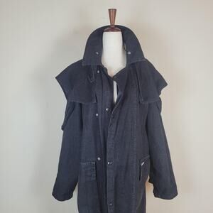 VTG Stoney River Coat Mens Medium Black Denim Duster Western USA Drover Outback