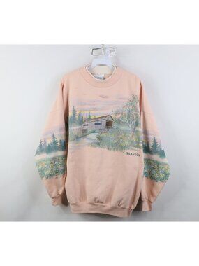 Vintage 90s Streetwear Womens Large Branson All Over Print Flower Sweatshirt USA