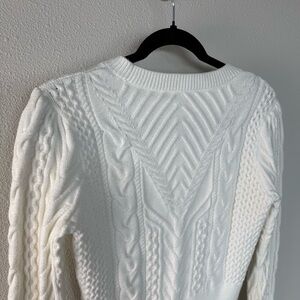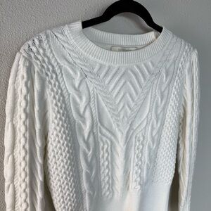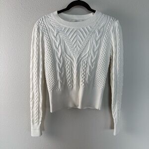 Favorite Daughter Esther Cable Knit Crop Crewneck Sweater Ivory Women’s Small