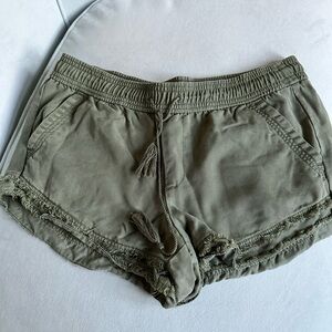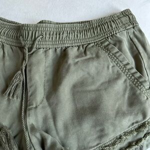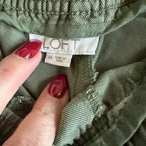LOFT Olive Green Frayed Hem Drawstring Shorts