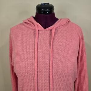 Women's LC Lauren Conrad Pink Shimmer Waffle Knit Hooded Top | Size Medium