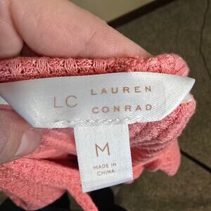 Excellent condition, women's LC Lauren Conrad pink with shimmer, waffle knit, hooded top. This is lightweight and does stretch.