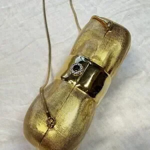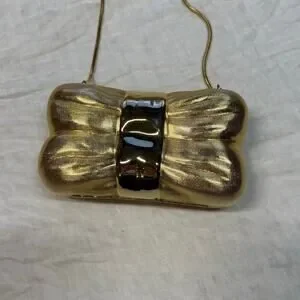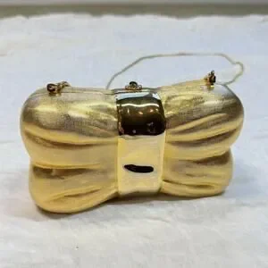 Vintage Saks Fifth Avenue Italy Bow Hinged Clamshell Gold Clutch Evening Bag