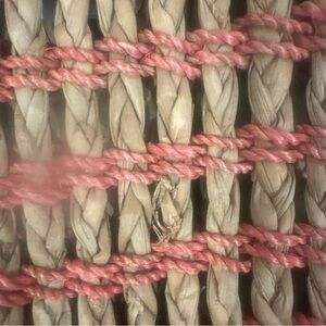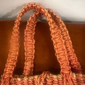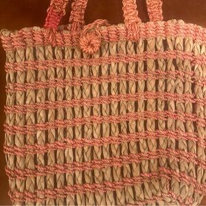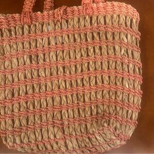 Perfect spring summer bag tan w pinkish salmon color weaved throughout all natural materials good condition w signs of use shown in pics