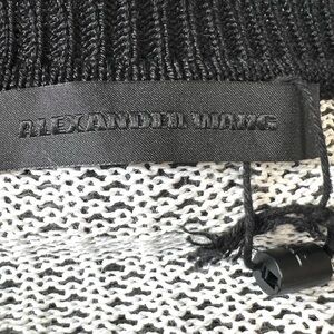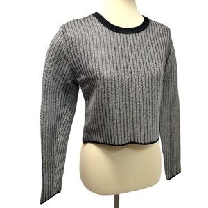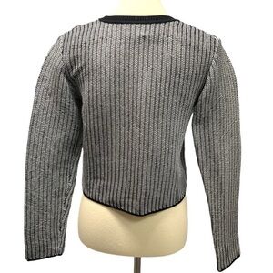 Alexander Wang Black & White Vinyl Technical Tweed Long Sleeve Crop Top Women Small